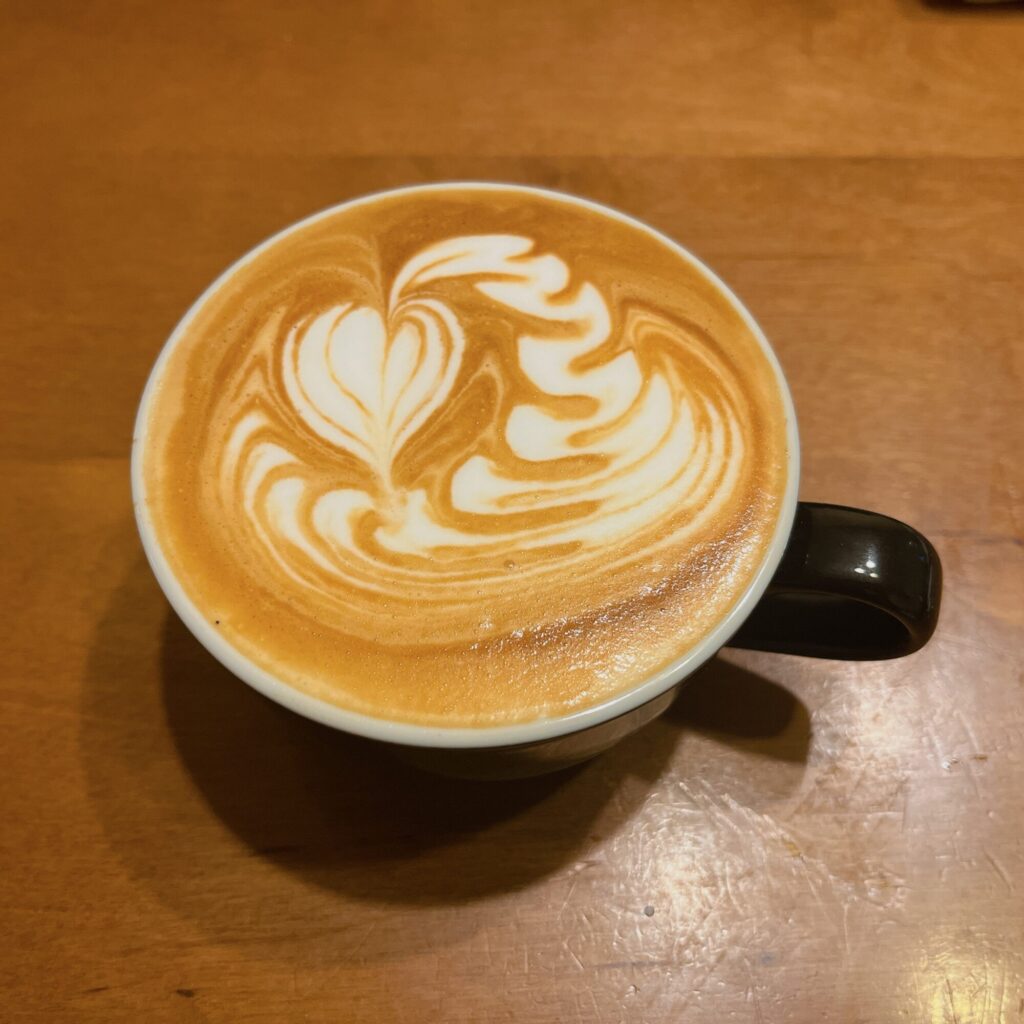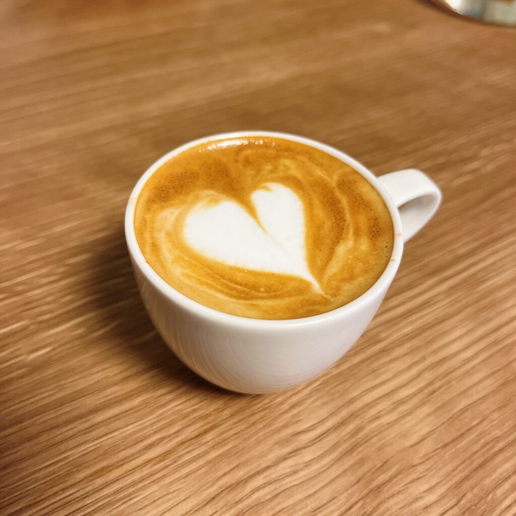 カップが小さいのでラテアートはマキアートの時に描きますが当然このように小さいものに限られてしまいます。