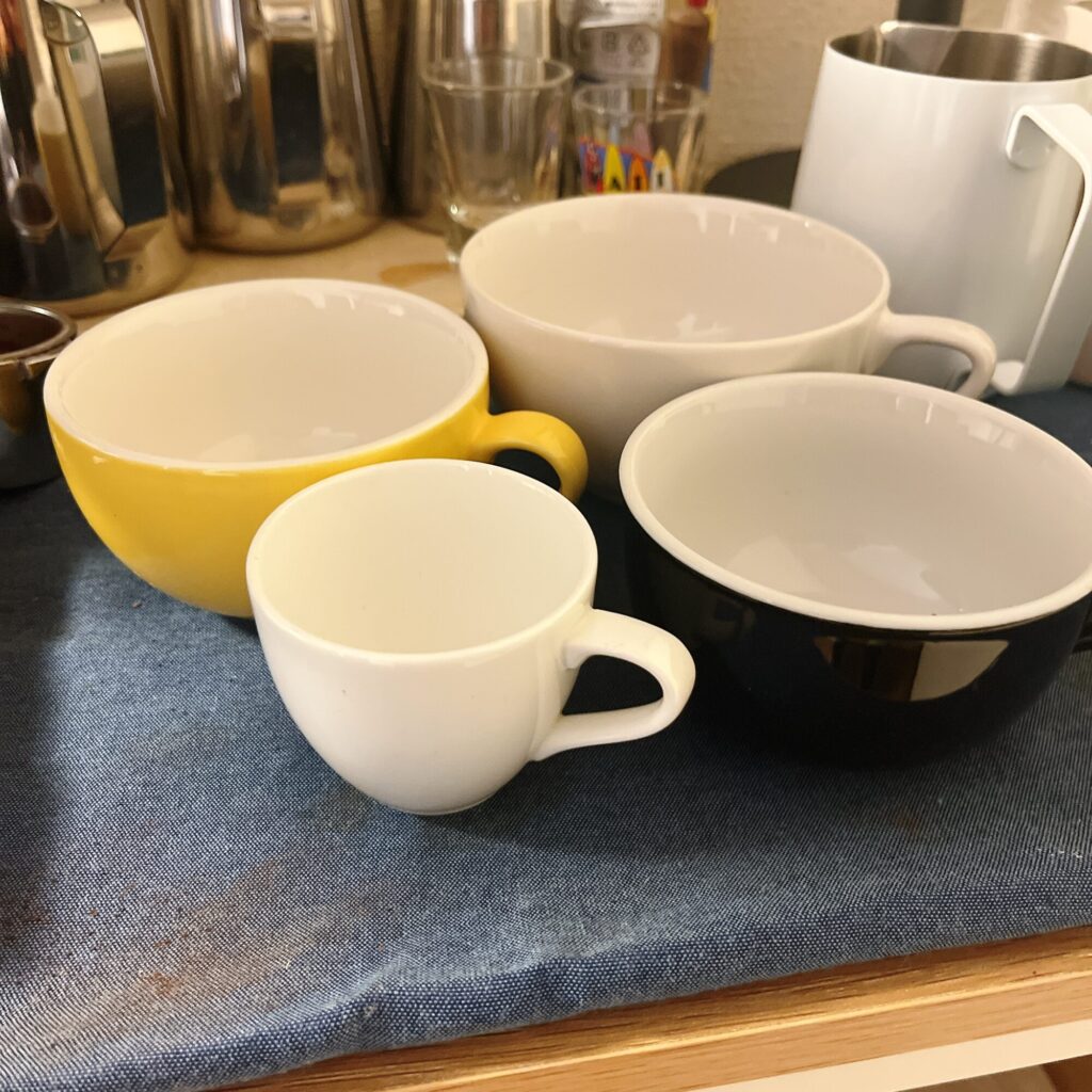 なのでこれからラテアートを始めようとする方の為に、自分の持っているカップを例に挙げながら用途別にお勧めのカップのサイズを紹介していこうと思います。