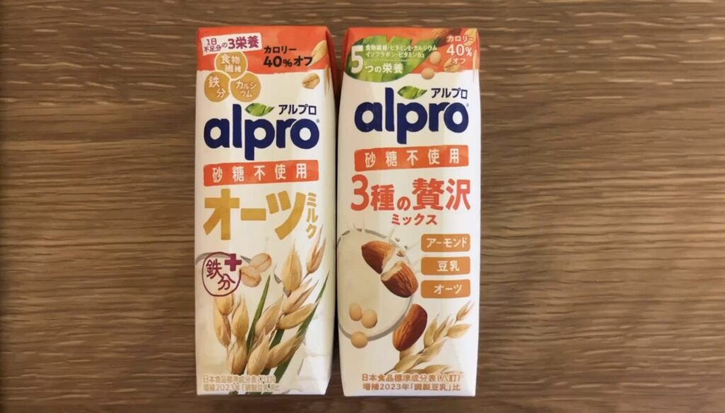 ちなみに今回自分はアルプロのオーツミルクの2種類を試してみたのでもし興味があるなら参考にしてみて下さい。